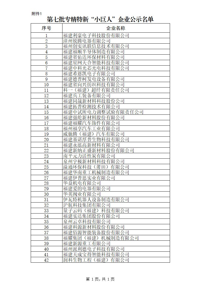 1.第七批专精特新“小巨人”企业公示名单