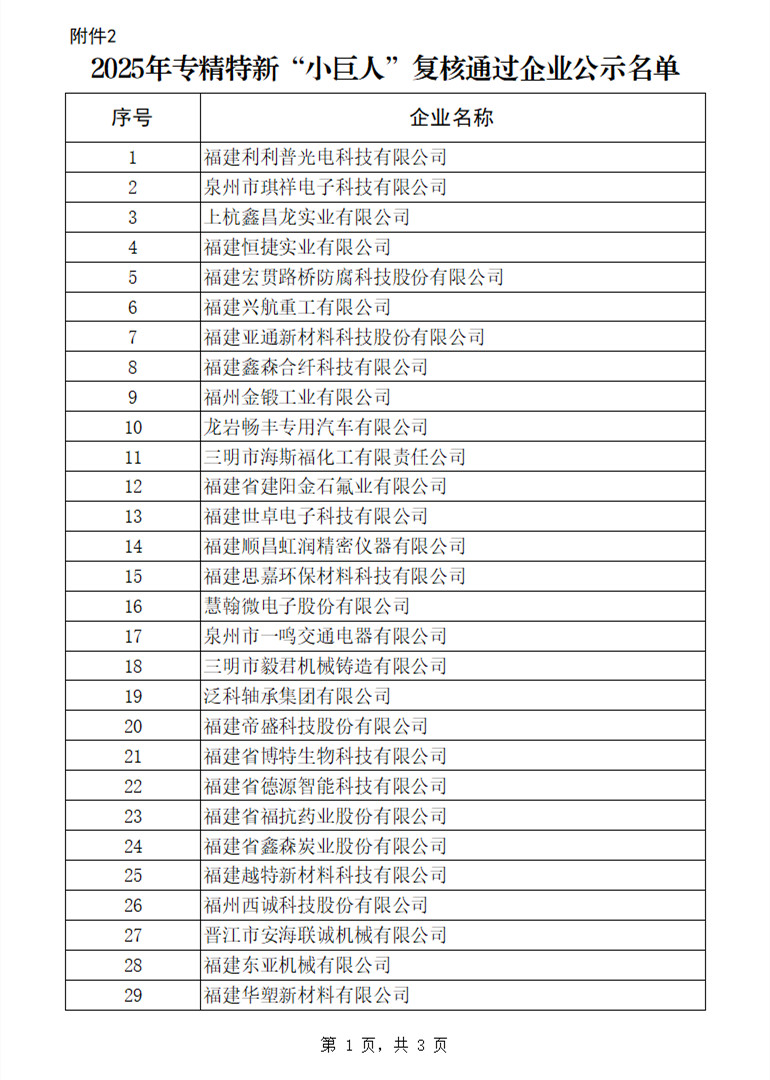 2.2025年专精特新“小巨人”复核通过企业公示名单